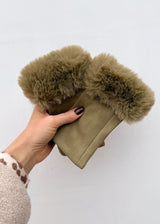 Experience cozy comfort with our Fur Trim Hand Warmer Glove in olive...