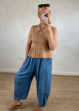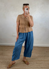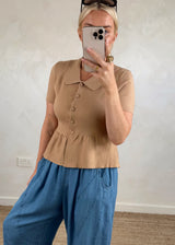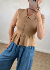 Elevate your wardrobe with the Ellie peplum knit in camel.