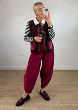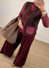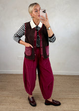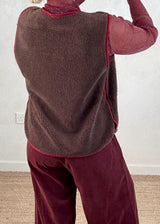 The Erica Borg gilet in rich chocolate is the perfect layering piece for cooler days. Its cozy, textured fabric adds warmth without bulk
