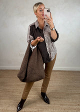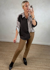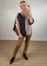 The Gina Striped Shirt is a must have for the upcoming season, blending classic style with unique details.