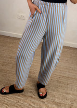 High waist striped cocoon jogger - mocha/pale blue
