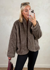 Elevate your wardrobe with this luxurious taupe fur coat, crafted in Italy and fully lined for exceptional comfort. Ideal for the changing seasons, it combines timeless style with practical warmth, making it an essential piece for effortless sophistication.