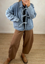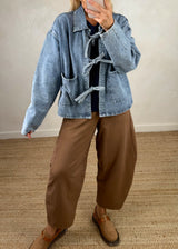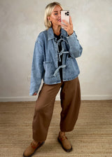 The Tilly tie front denim jacket is an essential addition to your wardrobe this season.