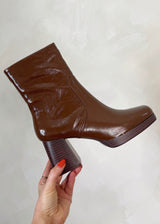 Slip into sophistication with the Twiggy platform boot. This versatile boot features a shiny patent look and a side zip fastener, perfect for dressing up or down. With a 3 inch heel, elevate any occasion with style and grace.