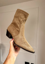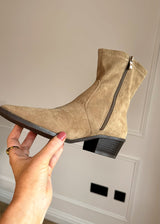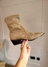 The Moss ankle boot in sand is the perfect combination of comfort and style, with a 1.5 inch heel and soft suede effect fabric. Dress them up or down for any occasion. An essential addition to your wardrobe for the upcoming seasons.