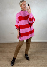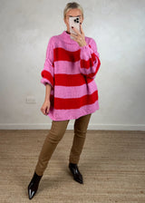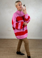 This Striped Kurt grunge knit in red and pink is a must have for the upcoming season..