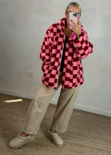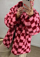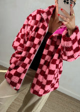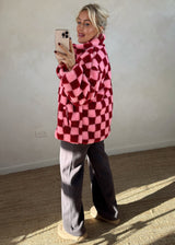 Checkerboard fleece - pink/red