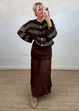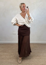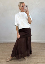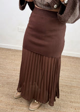 Elevate your wardrobe with the Delia pleated skirt in rich chocolate.