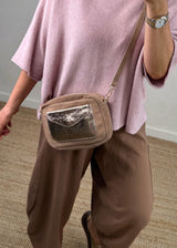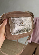 Real suede cross body bag with front leather pocket, zip and removable shoulder strap....