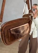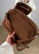 Real suede cross body bag with front leather pocket, zip and removable shoulder strap....