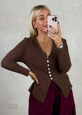Crafted in Italy from sumptuous soft knit, the Elodie is the versatile essential every wardrobe needs. Detailed buttons elevate this piece beyond the ordinary, making it equally at home layered under a blazer or worn solo as a statement top. Effortlessly transition from day to night this mocha knit adapts to your style, whether you're dressing up or keeping it casual. A timeless investment that works harder than you'd expect.