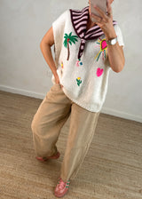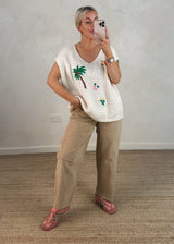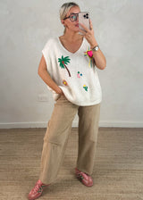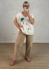 Crafted in Italy with meticulous attention to detail, this cream knit combines timeless elegance with everyday versatility. The super soft fabric feels luxurious against the skin, while delicate embroidery adds a refined touch that elevates any outfit. Hand wash to preserve its quality and beauty season after season. An essential wardrobe staple that transitions effortlessly from autumn through spring, offering both comfort and sophistication for the months ahead.