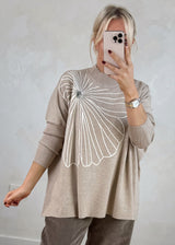 Elevate your autumn wardrobe with this sophisticated flora embroidered knit in mocha..