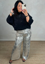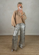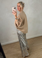 Elevate your festive wardrobe with this luxurious camel knit, adorned with eye catching diamante detailing across the front. Whether you're hosting a sophisticated brunch, stepping out for an evening celebration, or making a statement on Christmas Day or New Year's Eve, this piece delivers effortless glamour. The warm camel tone pairs beautifully with everything from tailored trousers to festive skirts, ensuring you look polished and radiant through every seasonal occasion.