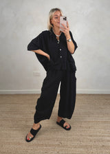 Fiona linen blend shirt - black