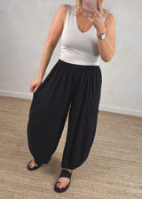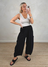 Junie barrel leg linen trouser - Black