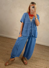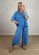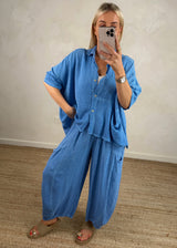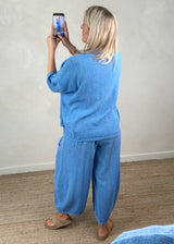 Junie barrel leg linen trouser - cerulean