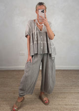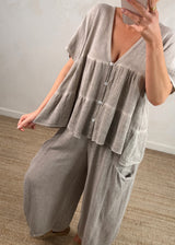 Junie barrel leg linen trouser - greige