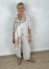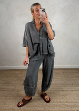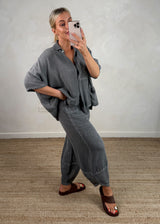 Crafted in Italy from a breathable linen cotton blend, the Sofia pocket trouser in slate is a versatile wardrobe essential that transitions effortlessly day to night…