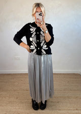Elevate your wardrobe with the Fern pleated skirt in shimmering silver. Crafted in Italy...