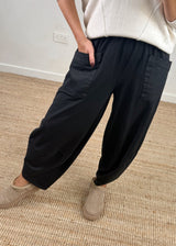 Easy to wear jersey jogger pant with stretch waist, wide leg and tapered cuff.…