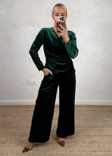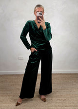 Elevate your festive wardrobe with the Cleo velvet blouse in jewel green. Crafted in Italy with luxurious velvet fabric.
