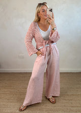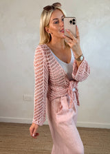 Elevate your wardrobe with the Diaz crochet cover up in peach, crafted in Italy from a comfortable 68% cotton blend. Featuring subtle lurex thread details, this essential piece adds a touch of shimmer perfect for brunch, holidays, or stylish travel days. Designed for easy care with hand washing, it effortlessly combines elegance and practicality for your go to layering option.