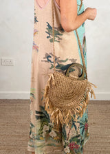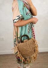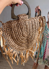 The perfect boho style bag to style your way through summer…☀️ Featuring wooden handles, zip closure, straw fringing and a plaited cross body strap…