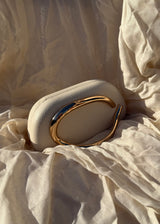 Elevate your evening look with this stunning cream clutch, featuring an exquisite gold handle that catches the light beautifully. The perfect companion for weddings, parties, and special occasions throughout the season, this versatile piece transitions effortlessly from day to night. Its sophisticated colour and luxurious hardware make it an essential addition to any wardrobe. Whether you're treating yourself or searching for that memorable gift, this clutch delivers timeless elegance and undeniable style.