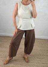 Elevate your wardrobe with the Harriet tie back top in classic cream, crafted in Italy for exceptional quality. Featuring a delicate keyhole at the back secured with a gold effect button, this versatile piece effortlessly transitions from casual brunches to stylish evenings out. Dress it up or down to suit any occasion an essential addition to your seasonal collection.