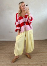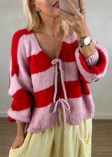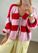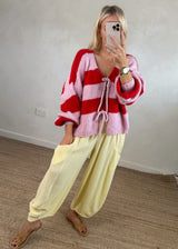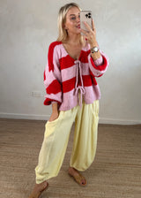 Crafted in Italy, the Libby Striped Tie Front Knit in pink and red offers exceptional softness and style. This versatile piece is perfect for holidays, travel, weekends, or casual outings, making it an essential addition to your wardrobe. Its timeless design and comfortable fit ensure you look effortlessly chic wherever you go.