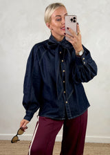 Lou denim pussy bow shirt