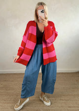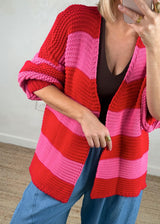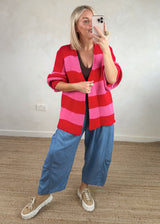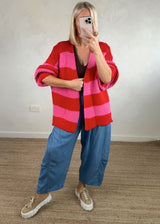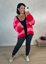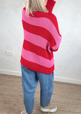Experience the luxurious softness of the Luca Striped Knit in red/pink, expertly crafted in Italy.