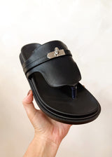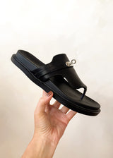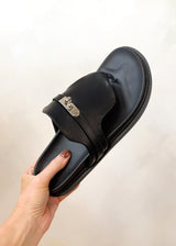 The Mel slider in black is the perfect addition to your spring and summer wardrobe. This essential piece effortlessly combines style and comfort, making it ideal for travelling, holidays, and nights out. Its sleek design brings relaxed weekend vibes while ensuring versatility for any occasion. Step out with confidence and ease in these must have sliders that complement every outfit.