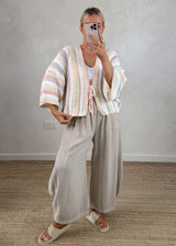 Crafted in Italy, this stunning pastel rainbow knit is the versatile essential every wardrobe needs.