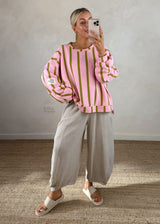 Perfect striped sweater - blush/olive