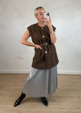 Elevate your wardrobe with the Polly waistcoat in chocolate, crafted in Italy for premium quality...