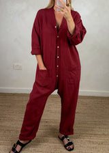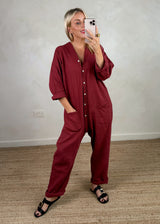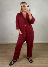 Seth linen blend jumpsuit - deep red