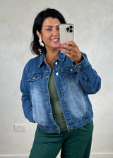 Crafted in Italy, the Shannon denim jacket combines style and practicality with two front and two side pockets, ideal for keeping essentials close.