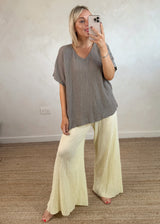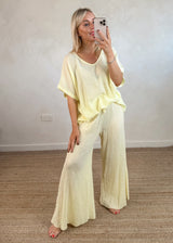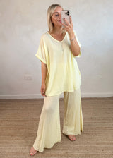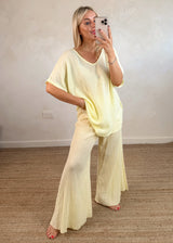 Crafted in Italy from a comfortable 97% cotton and 3% elastane blend, the Tolly crepe palazzo in lemon is an essential wardrobe piece. Its versatile design lets you dress it up with wedges or keep it casual with pumps, perfect for holidays, travel, or nights out. Elevate your style effortlessly with this chic and adaptable palazzo.