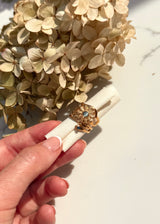 This exquisite 18ct gold plated ring adds a touch of elegance to any outfit, making it perfect for going out, holidays, or dressing up and down. Its versatile design ensures you'll always have a stunning accessory ready for every occasion. Elevate your style effortlessly with this timeless piece.18ct Gold Plated