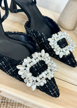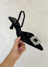 These stunning slingback heels feature a comfortable 2.5 inch approximate kitten heel and a sparkling rectangle diamanté jewel, making them both stylish and comfortable. A must have for any fashion forward wardrobe this season.