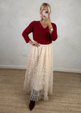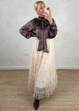 Elevate your seasonal wardrobe with this stunning cream tulle skirt. Its romantic silhouette and rich, versatile hue make it the perfect companion for autumn and winter occasions from casual brunches to festive celebrations. Whether you're dressing up for Christmas gatherings, ringing in the New Year, or simply stepping out in style, this essential piece transitions effortlessly from day to night. The delicate tulle construction adds an air of sophistication while remaining comfortable enough for all day wear. A timeless investment that deserves a permanent place in your wardrobe.