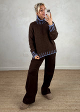 Ada contrast stitch knit - choc/blue