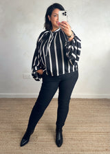 Elevate your wardrobe with the Cassie striped pussy bow blouse in black, expertly crafted in Italy.