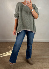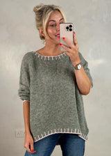 Elle contrast stitch knit - light khaki