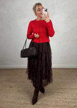 Mae button top - red