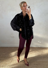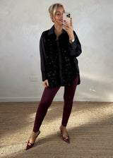 Sparkle and shine this holiday season with our Minnelli sequin blouse in black! The perfect addition to your Christmas wardrobe, this blouse will add a touch of glamour to any outfit. Stand out at any holiday party with this must have piece. You won't want to take it off!