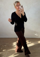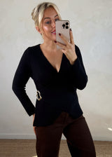 Elevate your seasonal wardrobe with this Italian crafted molten knit in classic black. Luxuriously soft to the touch, it's the versatile piece you've been searching for dress it up for evening sophistication or down for effortless everyday style. Finished with gleaming gold effect hardware, this essential layer transitions seamlessly from autumn through winter, delivering both comfort and timeless elegance.