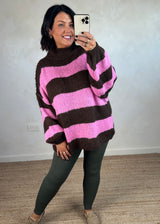 This Striped Kurt grunge knit in chocolate and pink is a must have for the upcoming season...